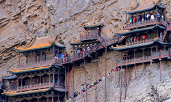 悬空寺位于恒山金龙峡西侧翠屏峰的峭壁间,素有“悬空寺,半天高,三根马尾空中吊”的俚语 ,以如临深渊的险峻而著称。建成于1400年前北魏后期,是中国仅存的佛、道、儒三...